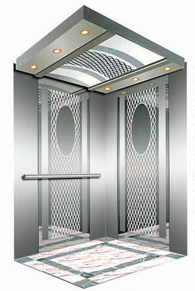 轿顶:中间部分是影像拱顶,两侧为不锈钢底板上辅以筒灯的柔光照明设计。