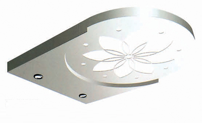 圆形荷花图案工艺板及后部加简灯的柔光照明设计