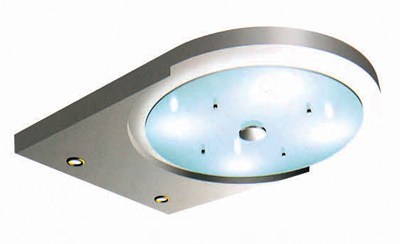 圆形玻璃造型及后部加简灯的柔光照明设计