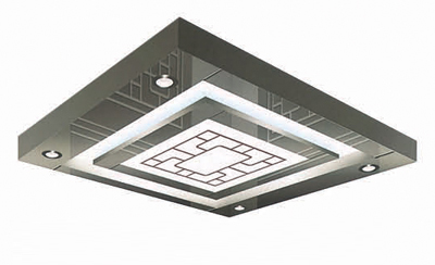 垂悬式方形影像主体灯板与简灯结合的柔光照明设计