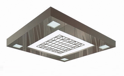 中部是影像拱顶,两侧为不锈钢底板上辅以简灯的柔光照明设计。