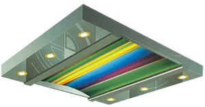 中部是影像拱顶,两侧为不锈钢底板上辅以简灯的柔光照明设计。